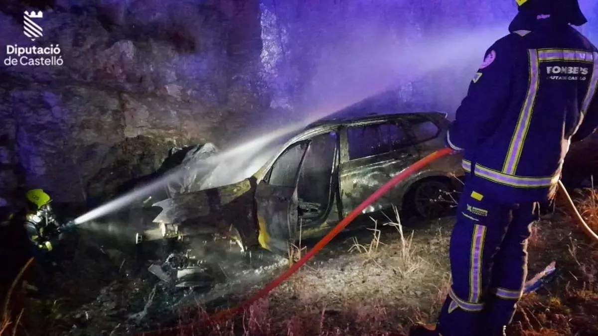 Bomberos del parque de la Plana Alta tuvieron que intervenir a última hora de la noche de ayer para extinguir el incendio de un vehículo en la AP-7, a la altura de Benicàssim.