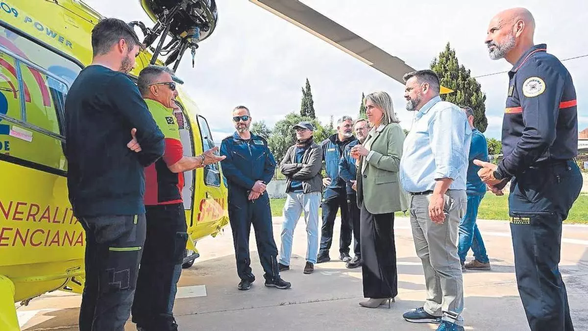 La presidenta de la Diputación, Marta Barrachina, visitó el helicóptero de rescate, activado por Semana Santa. / EDU_VELILLA